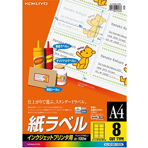- コクヨ インクジェット ラベル 8面 KJ-8165-100