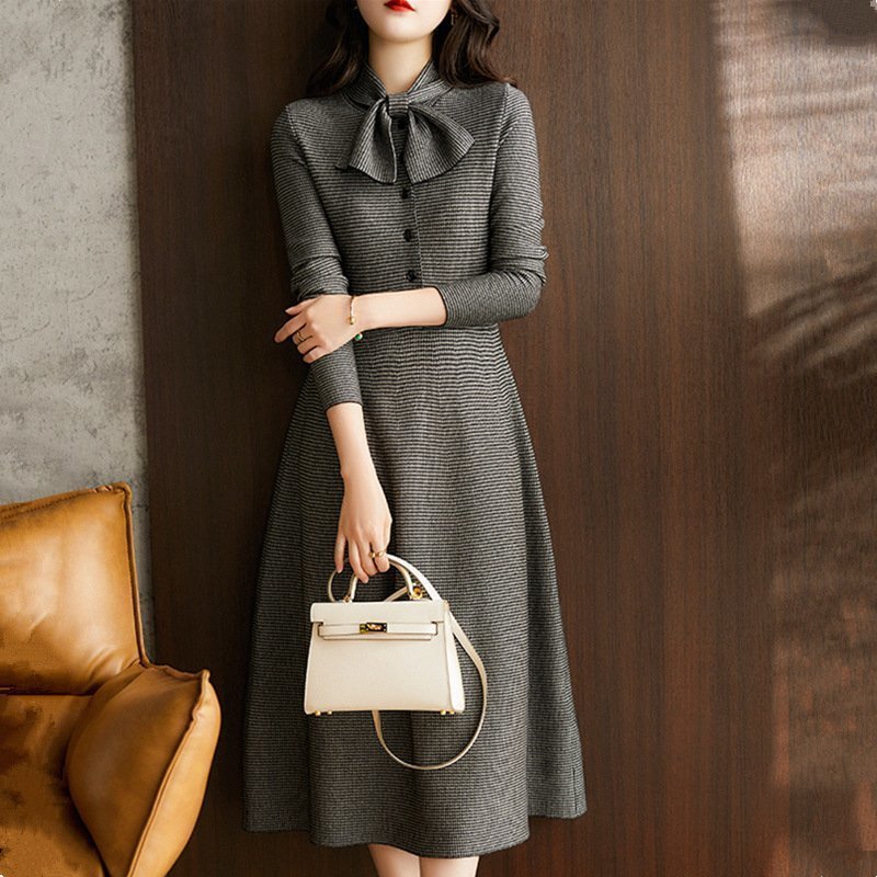 - LRM271★秋冬人気新作 伸縮性有り 上質 優雅 麗美のリボン 高級感満載 オシャレ 気質 暖かい ニットロングワンピース