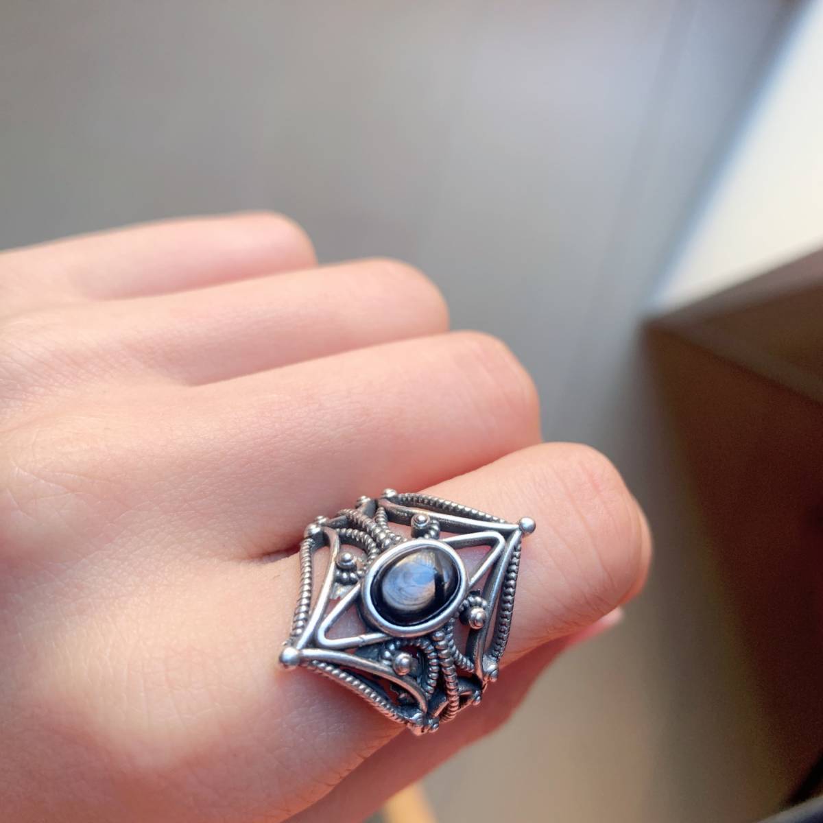 > ◇エジプト産◇ハイパーシーン(紫蘇輝石)◇指輪◇リング◇フリーサイズ◇天然石◇パワーストーン◇男女兼用◇巾着袋付き◇プレゼントにも