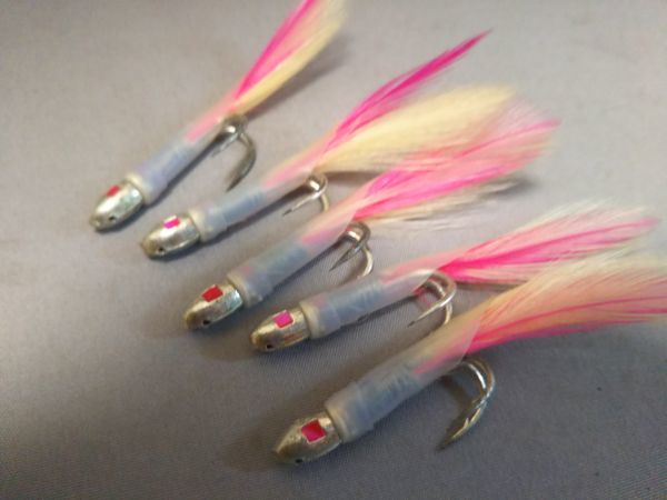 - 安値スタート! 未使用 フェザージグ 小 赤白フェザー・青ボディ 5本 ③