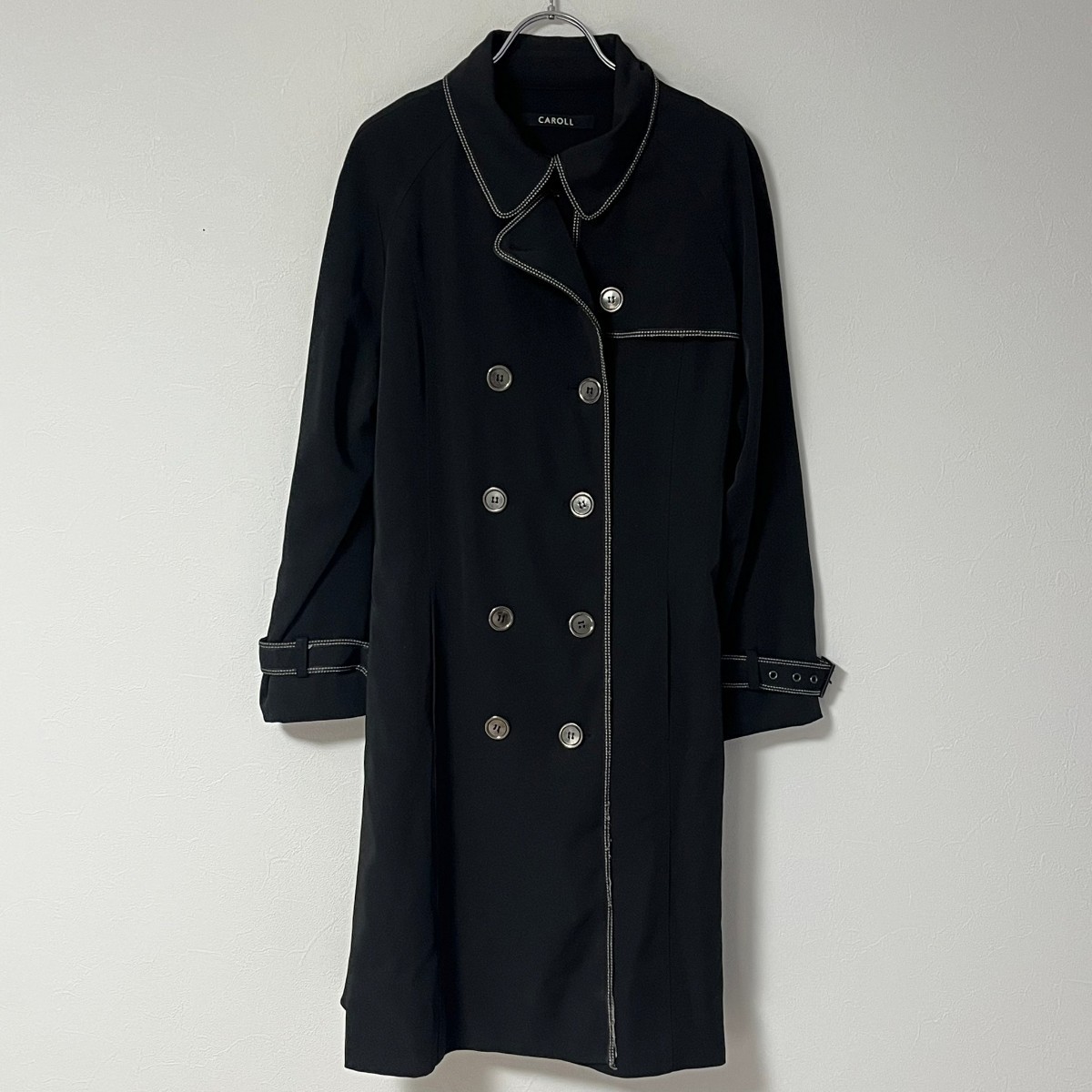 - CAROLL キャロル ダブルボタン コート アウターロングコート トレンチ ブラック サイズ44