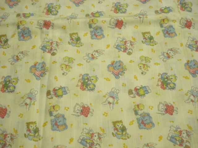 - ★「メリーボンボン旧柄・音楽(黄色系)」約50㎝×30㎝・レトロアニマル・メルヘン★