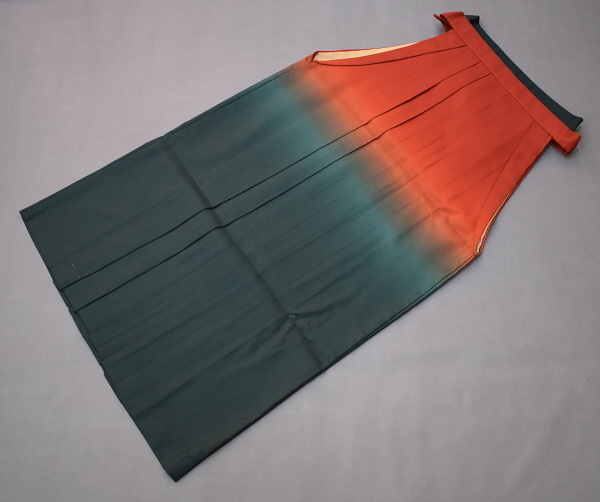 - A58-22【凛々】即決 中古品 ポリエステル 卒業式用 袴 行灯型 赤緑ぼかし 94.5cm ②