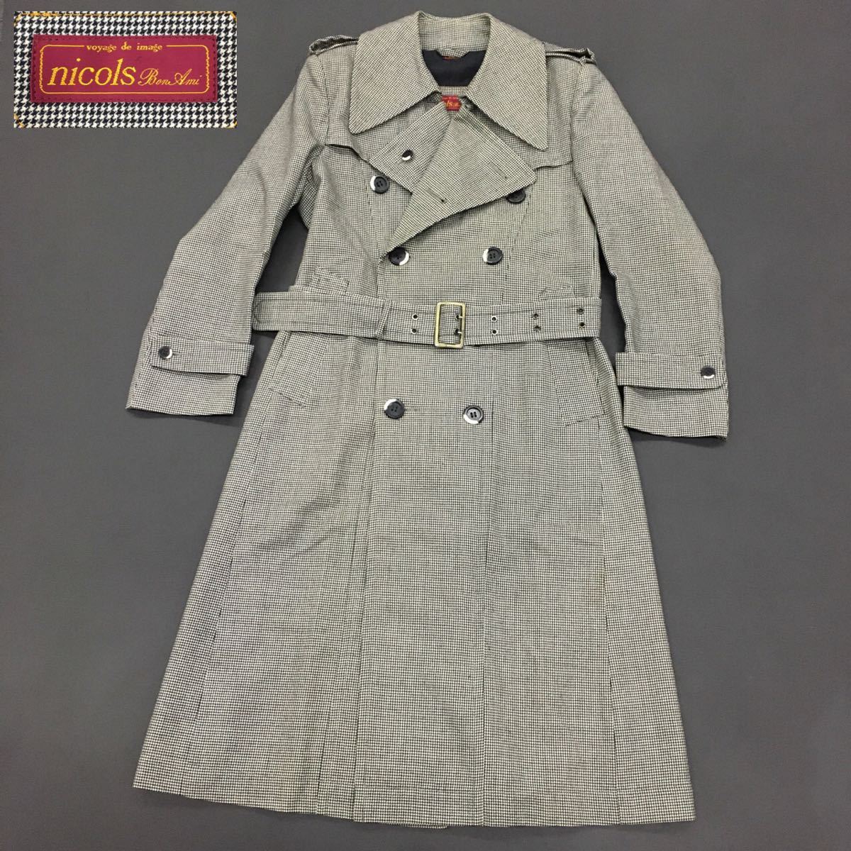 > nicols Bon Ami ニコルス ボンアミ チェスターコート ロングコート ダブル ベルテッド ウール 千鳥格子模様 紳士 メンズ サイズM