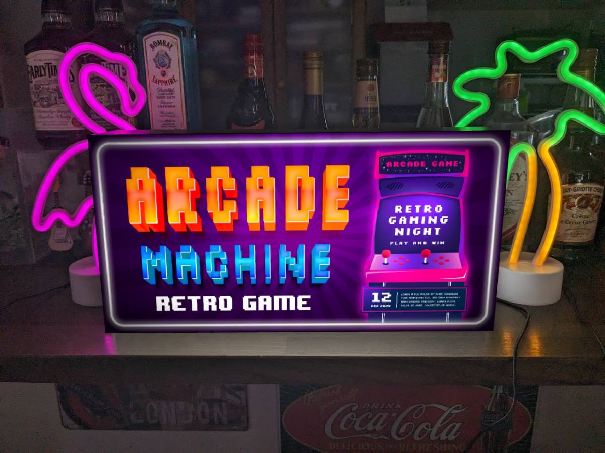 - 【Lサイズ】懐かしい アーケードマシーン ゲーム レトロゲーム 昭和レトロ 店舗 自宅 ランプ 看板 置物 雑貨 ライトBOX 電飾看板 電光看板