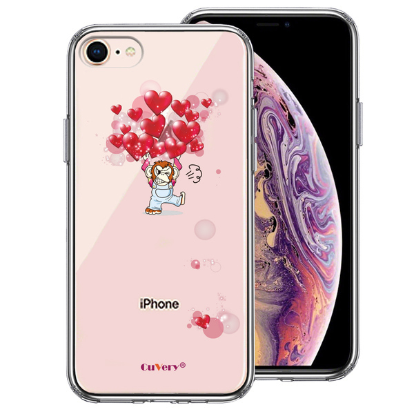 - iPhone8 ケース クリア チンパンジー ハート いっぱい スマホケース 側面ソフト 背面ハード ハイブリッド