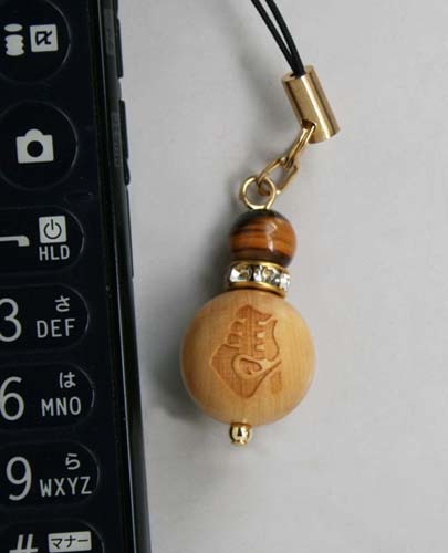 - 【開運・縁起】つげ「左馬」瓢箪ストラップ(根付兼用)