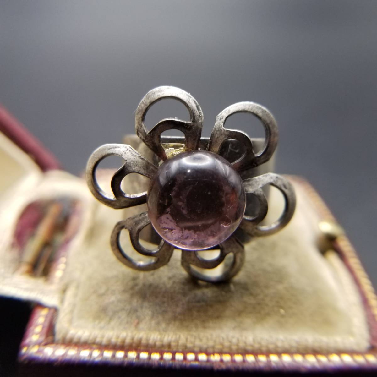 - 1960s ZIGGY ORIGINALS N.Y.C. ライトピンク ラウンド カボション フラワー モチーフ フリー ヴィンテージ リング 指輪 ジュエリー Y13-E