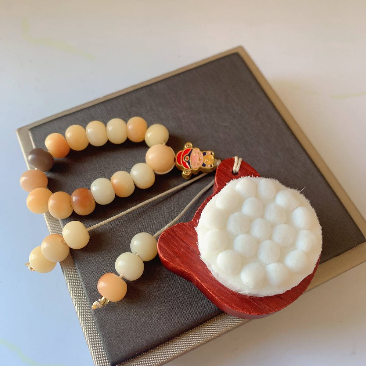 - 訳あり◇メイクブラシ◇紫檀木+風化菩提◇可愛い◇彫刻◇巾着袋付き◇プレゼントにも027A11705