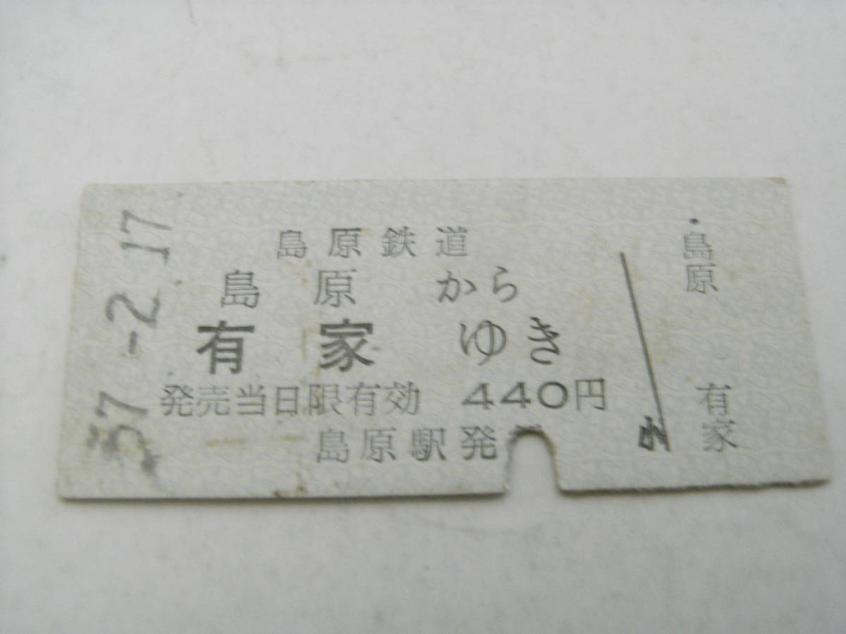 - 島原鉄道 島原から有家ゆき 440円 昭和57年2月17日 島原駅発行