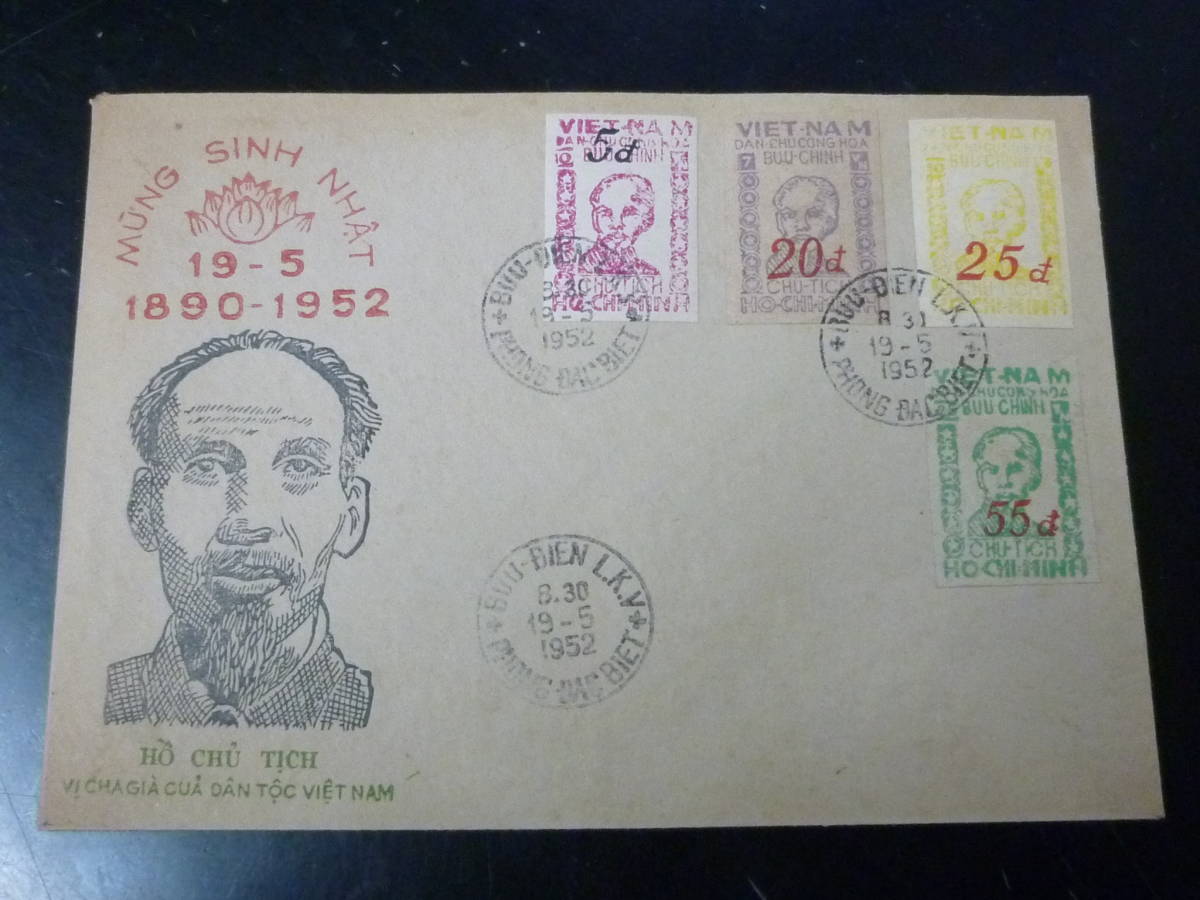 - 24 A №1 北ベトナム切手(南西ベトナム地区) ホーチミン<1951年 不発行 に 改値加刷 4種完貼 カバー