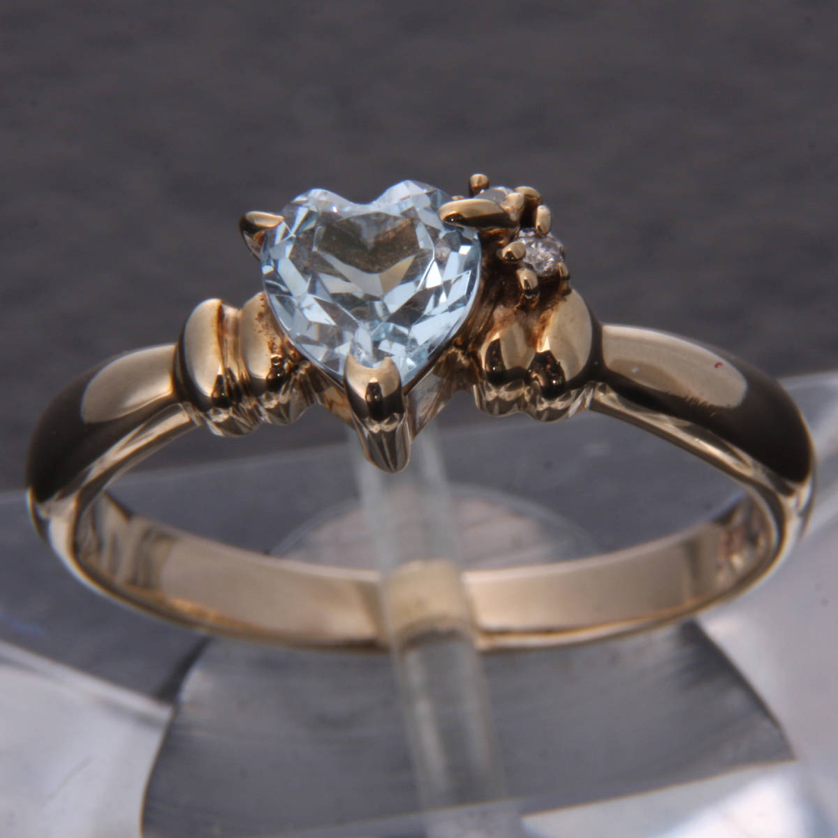 - ke9810◆K9リング アクアマリン/ダイヤモンド ハート 10.5号