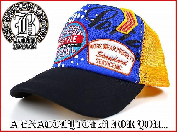 - ポイント10倍 帽子52青 アメカジ&お兄系ワッペン刺繍入りキャップ ギャルオ悪羅悪羅系 オラオラ系
