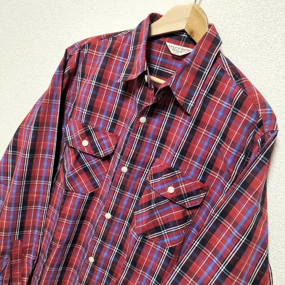 - 美品★Levi's RedTab 長袖 コットン シャツ チェック柄 赤系 メンズ サイズL〜XL相当 リーバイス レッドタブ アメカジ ブランド古着 USED