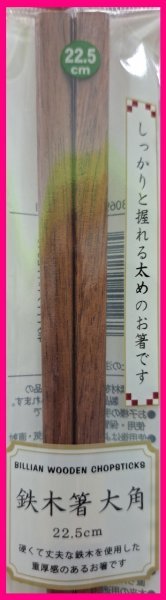 > 【送料無料:箸:鉄木箸 大角:1膳】★しっかりと握れる太めのお箸:22.5cm:硬くて丈夫な:重厚感のあるお箸:天然木 (てつぼく) ★箸 鉄木