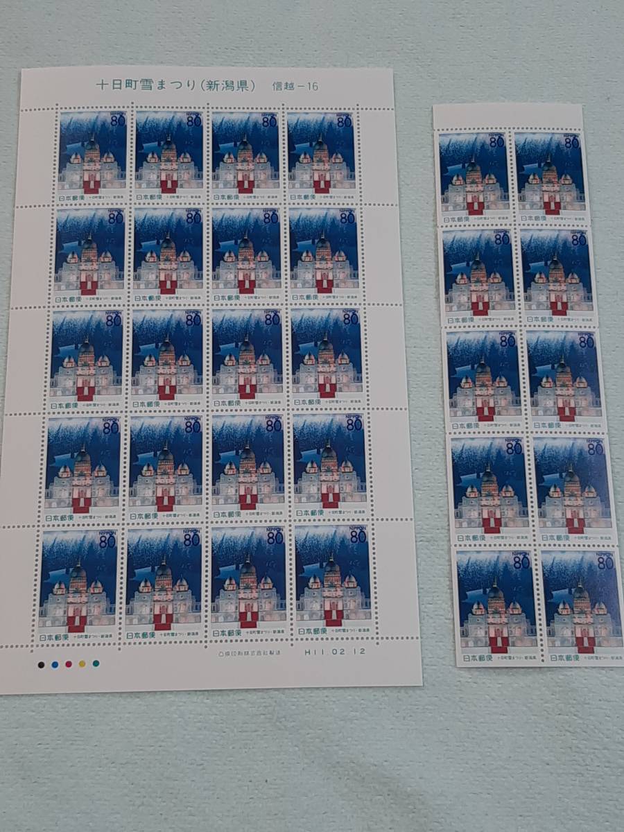 ふるさと切手 十日町雪まつり(新潟県)信越-16 H11 切手シート1枚と10枚シート