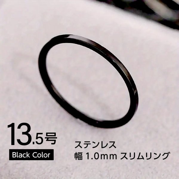 - J012-4 ステンレス1mm平打ちリング ブラック 13.5号