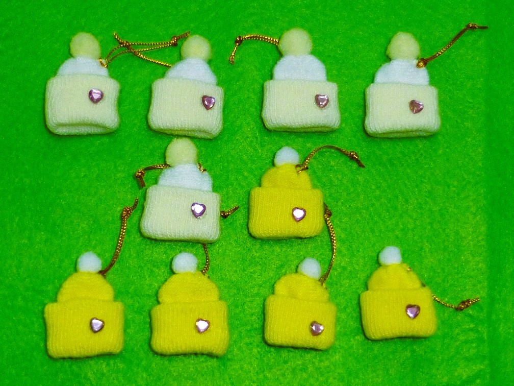 > 【☆ミニニットボウシチャーム10個☆】イエロー&アイボリー☆ニット帽 ボウシ ラインハート付き バレンタイン ホワイトデーラッピングに^^