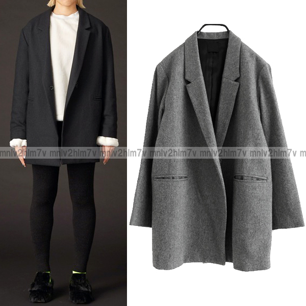 > 定35200円【KAAM カム】ウールテーラードジャケット オーバーサイズ ウエストベルト付き グレー WOOL TAILORED JACKET レディース