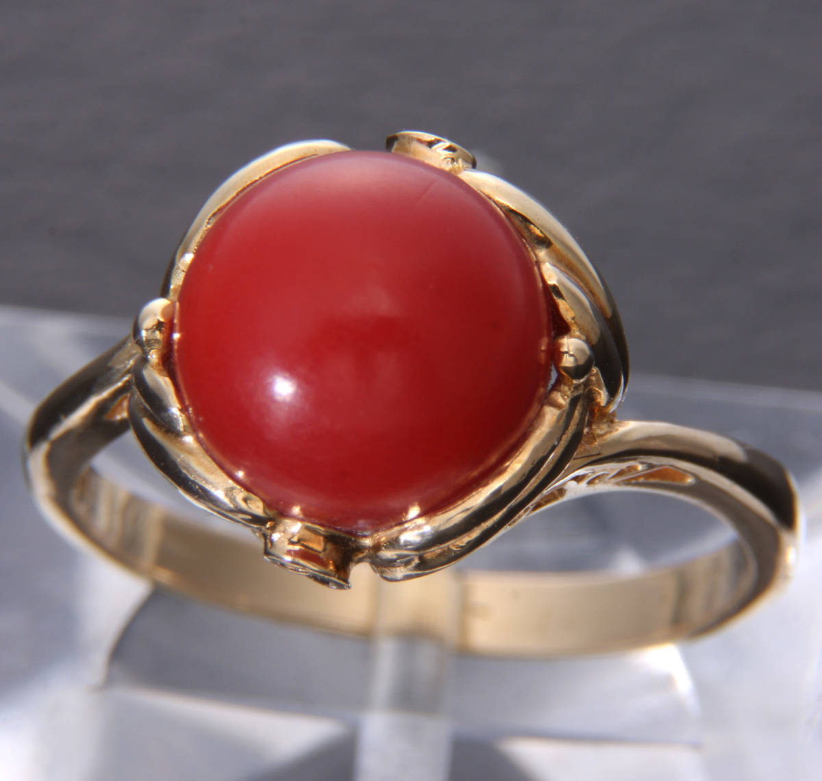 - ke9832◆K18リング 天然珊瑚/サンゴ 14.5号