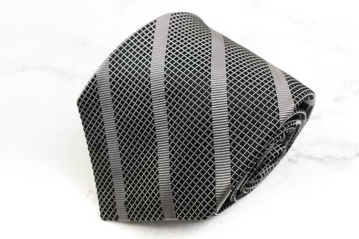 - フェアファクス シルク ストライプ柄 チェック柄 格子柄 日本 ブランド ネクタイ メンズ グレー