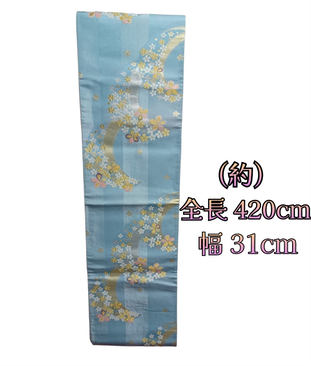 - 岩-帯138)帯 袋帯 豪華 成人式 卒業式 式典 和装 小物 着物 華やか 水色 花柄 振袖 リメイク 240131(番重