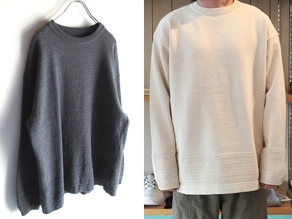 - crepuscule クレプスキュール Links Knit リンクス編み スウェットライク コットン クルーネック ニット 2 チャコール ワイドシルエット