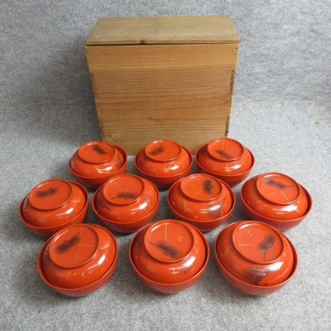 朱塗 沈金 吸物椀 10個です。寸法は高さ8cm、直径12cmです。状態は主観ですが綺麗だと思います。120サイズ、ゆうパックで発送を予定しています。商品画像が実際の商品そのものですので、ご入札前にしっかりとご確認いただきますようお願いいたします。タイトルと画像が異なる場合、当方のミスの可能性がありますので、お手数をおかけしますが、その際にはご連絡いただければ幸いです。また、気になる部分や詳細な画像が必要な場合は、質問からお気軽にご連絡ください。配送方法については、通常の配送にはゆうパックやクロネコヤマトを利用します。大型商品や重量のある商品には、西濃運輸、佐川急便を選択することがあります。軽量で壊れにくい小物には、クリックポストやレターパックを利用することもあります。同梱の場合は送料が変わることがある点、ご了承ください。商品の写真はデジタルカメラや照明、撮影環境により実物の色と異なる場合があります。「真作」とタイトルにある商品について、万が一真作でない際には返品を受けます。中古商品であるため、記載しきれない経年劣化や時代の汚れ、傷みなどがある場合がございます。十分なご理解をいただいた上で、ご入札いただけますと幸いです。皆様のご入札を心よりお待ちしております。他にも色々出品中ですので是非ご覧ください。