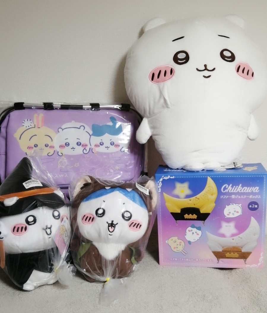 - ちいかわ 5点まとめ売りひんやりバスケット、Boo!BIGぬいぐるみ 、超BIG 、ソファー型ジュエリーボックス ちいかわ / ハチワレ