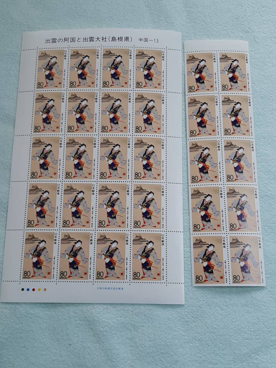 ふるさと切手 出雲の阿国と出雲大社(島根県)中国-13 H6 切手シート1枚と10枚シート