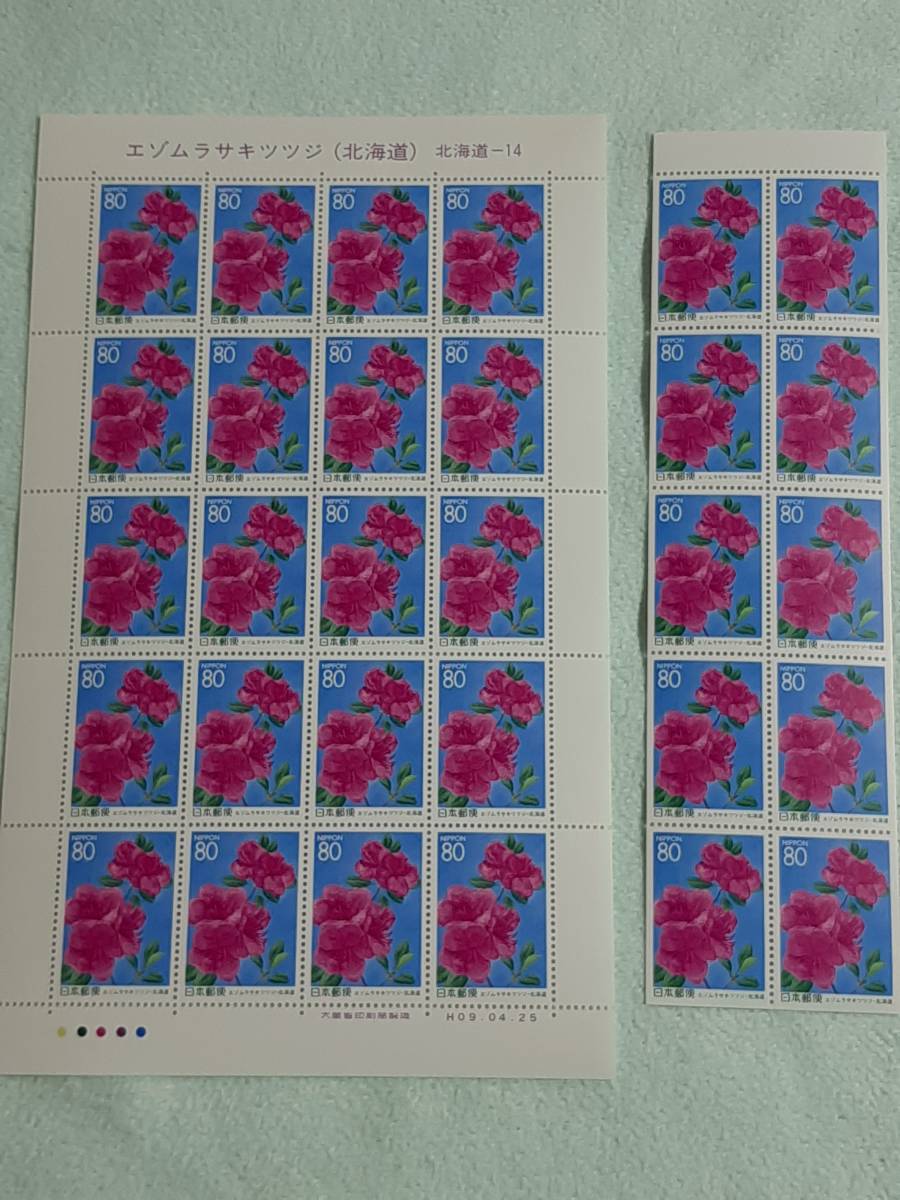 ふるさと切手 エゾムラサキツツジ(北海道)北海道-14 H9 切手シート1枚と10枚シート
