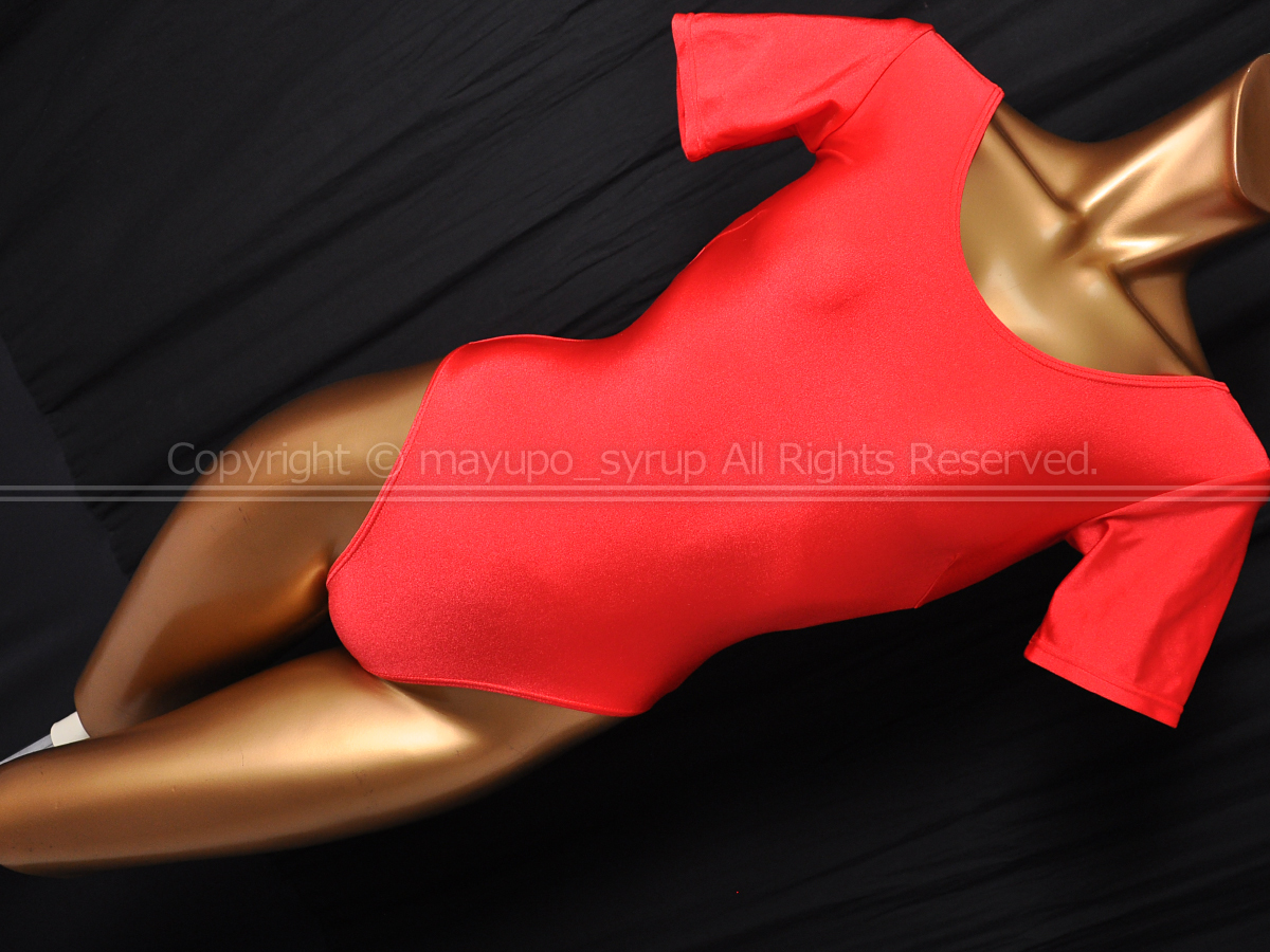 - L1228-18★美品 ツルツル艶々 半袖レオタード レッド 日本製 M