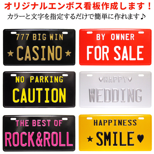 > オリジナルのプレートを制作!オリジナル ナンバープレート エンボス (カスタム サービス2) オリジナル看板作成 製作 ネームプレート 表札
