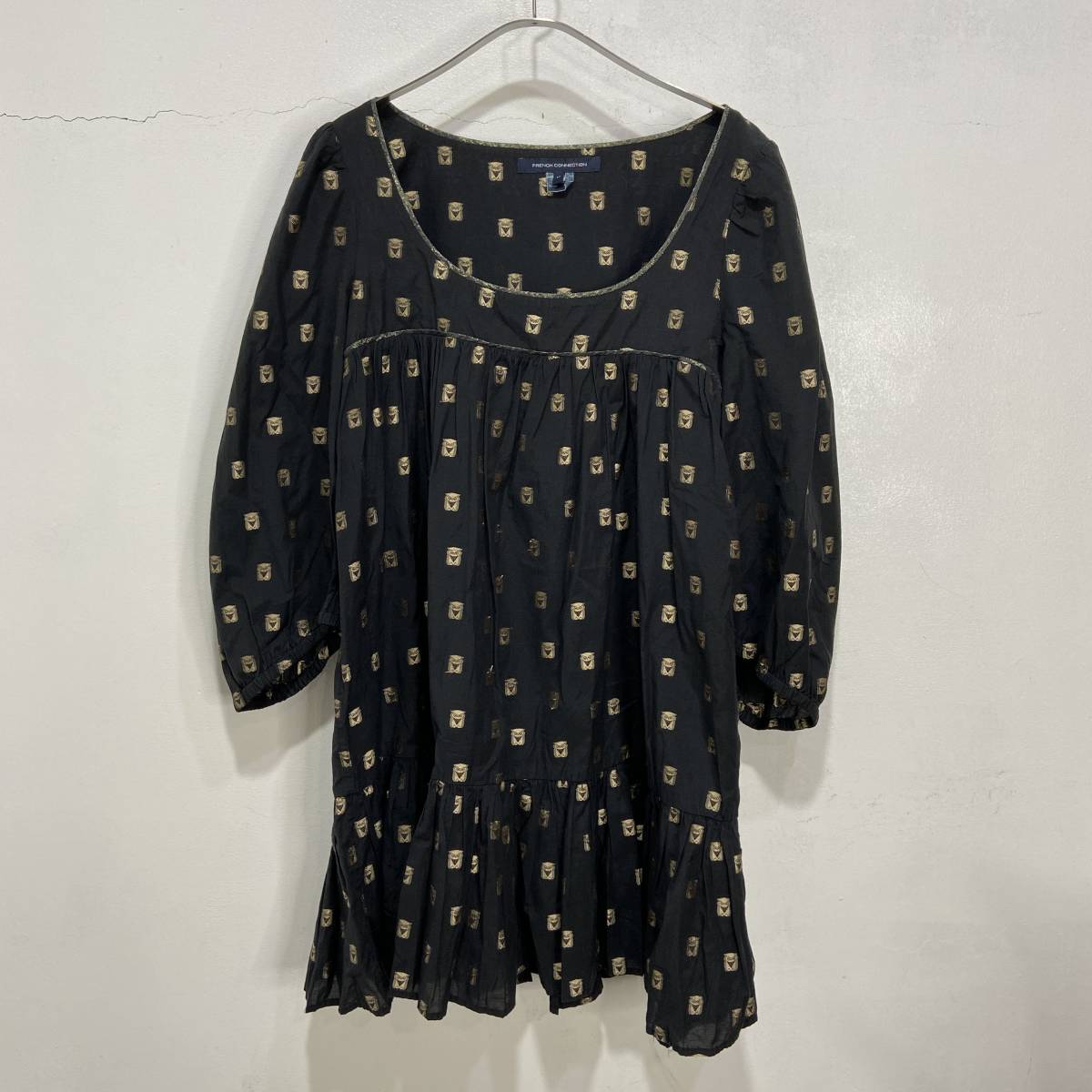 - 送料無料☆FRENCHCONNECTION☆フレンチコネクション☆総柄ワンピース☆五部袖☆フクロウ柄☆ブラック☆サイズ12☆B24M