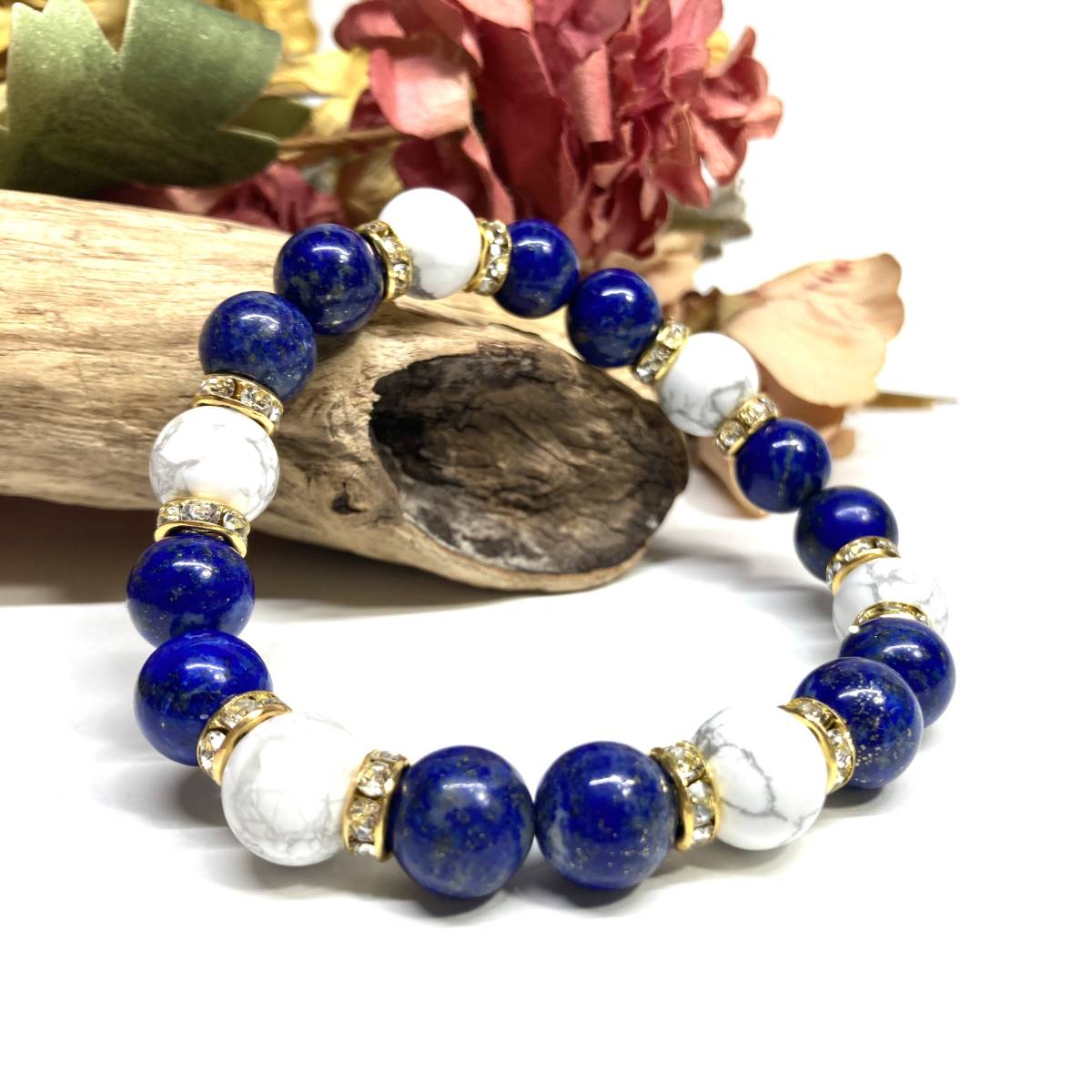 > ラピスラズリ&ハウライト パワーストーン ブレスレット 天然石ブレス (ゴールド) 10mm メンズ・レディース ストレス解消 お守り