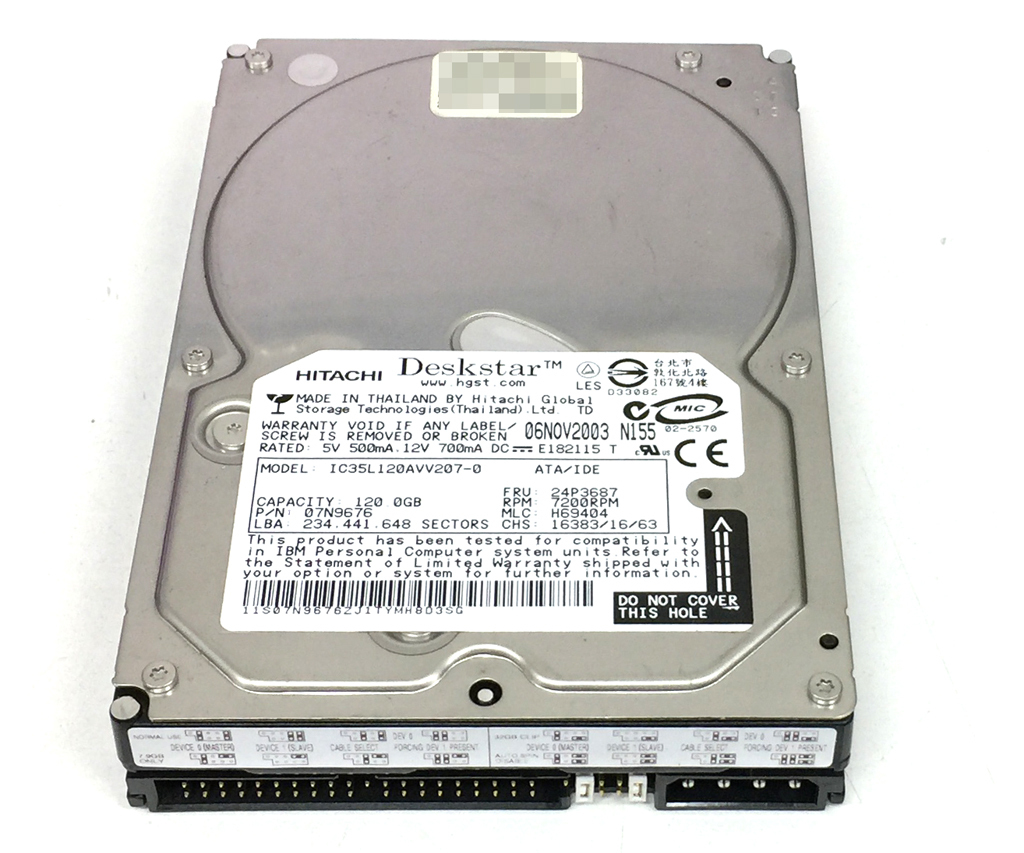 モデルナンバーは、IC35L120AVVA07-0 (07N9676 / 24P3687) となります。