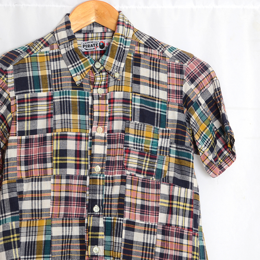 > AA339 ア ベイシング エイプ A BATHING APE 半袖シャツ ユース S 肩幅37 パッチワークシャツ メール便可 xq