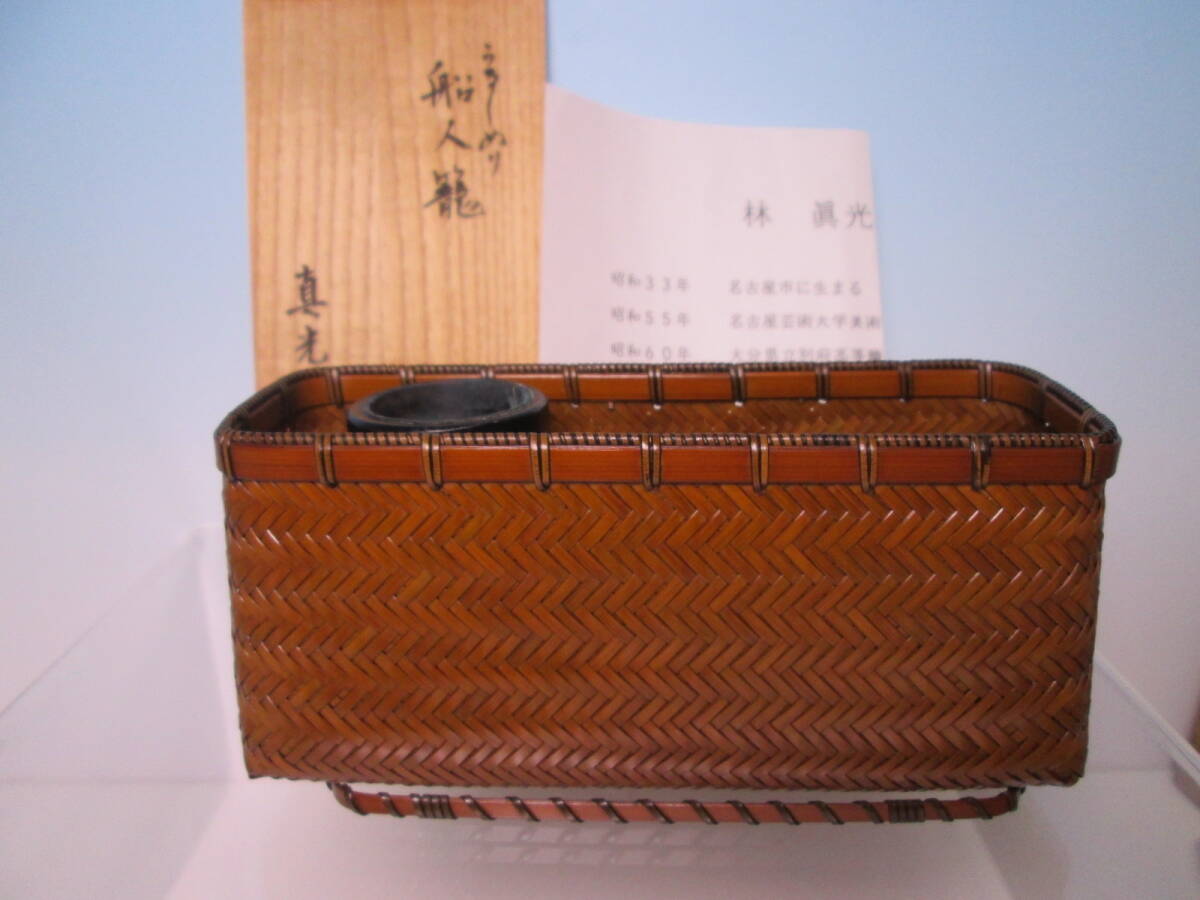 - ☆林眞光 作 うるしぬり『船人籠』共箱 花籠 竹籠 籠花入れ