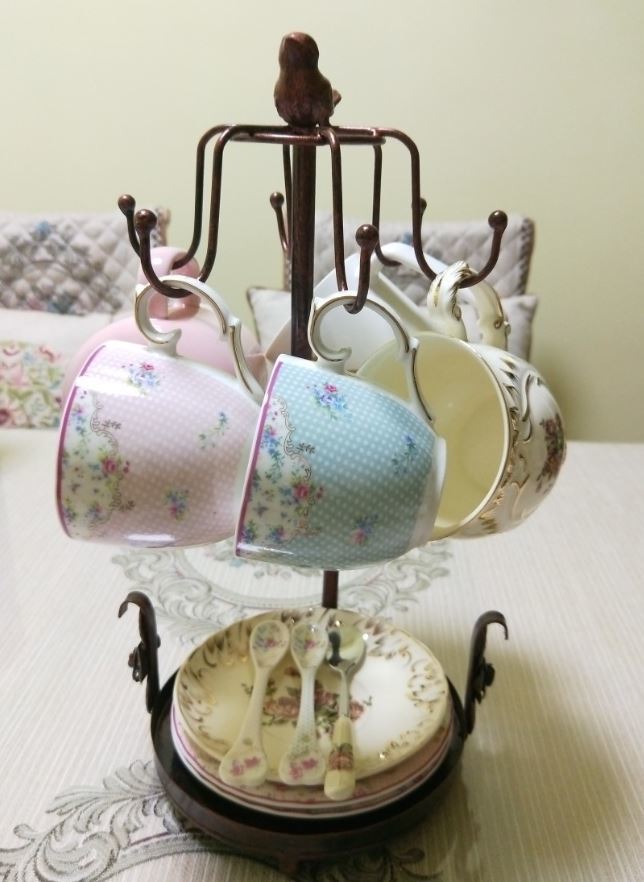 - LDL326# カップスタンド 小鳥モチーフ付き アンティーク風 6個用 (ブロンズ)