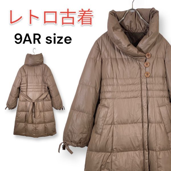 > ボリュームカラー Aライン ダウンコート サイズ9 ベージュ ショールカラー ロングコート レディース 女性用 婦人