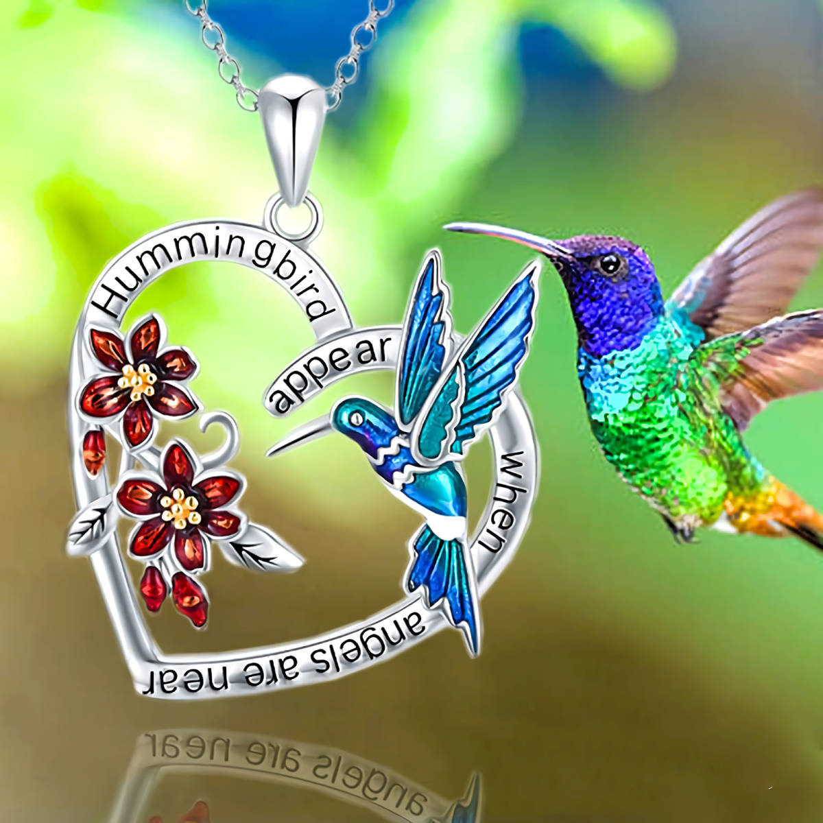 - 新品★送料無料★ネオンブルー サファイアハチドリハート プラチナ仕上925シルバーネックレス誕生日プレゼント旅行連休ギフト国内発送