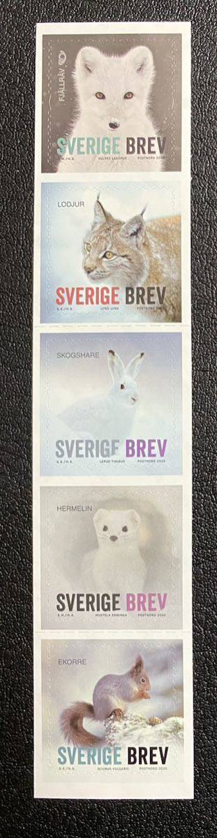 - スウェーデン 冬の動物 ホッキョクキツネ オオヤマネコ オコジョ リス ウサギ 5種完 未使用 NH