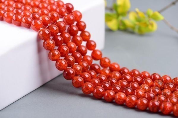 - [EasternStar] 海外発送 7A レッド ドラゴンアゲート 赤 龍紋瑪瑙 Fire Dragon Agate 玉サイズ16mm 1連売り 長さ約40cm