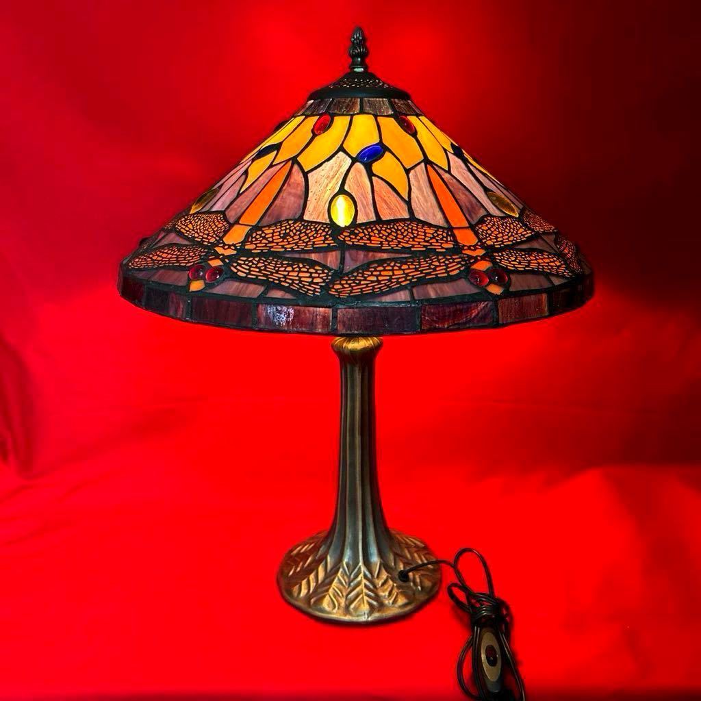 > ☆美品☆ステンドランプ トンボ柄 ティファニースタイル アンティーク 輸入雑貨 照明 芸術品 ステンドグラス インテリア (02256並