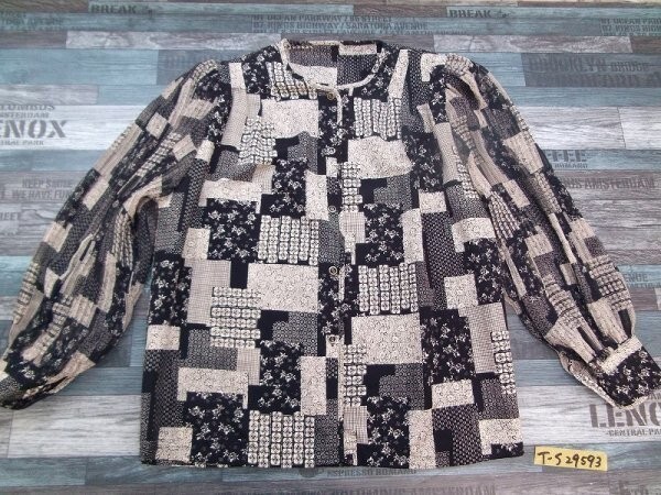 - 三姉妹 レディース 肩パッド 総柄 袖プリーツ ブラウス ジャケット 黒ベージュ