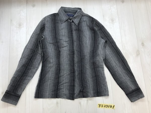 - ADOLFO DOMINGUEZ アドルフォドミンゲス レディース グラデーション ストライプ 薄手 綿 長袖シャツ 38 黒グレー
