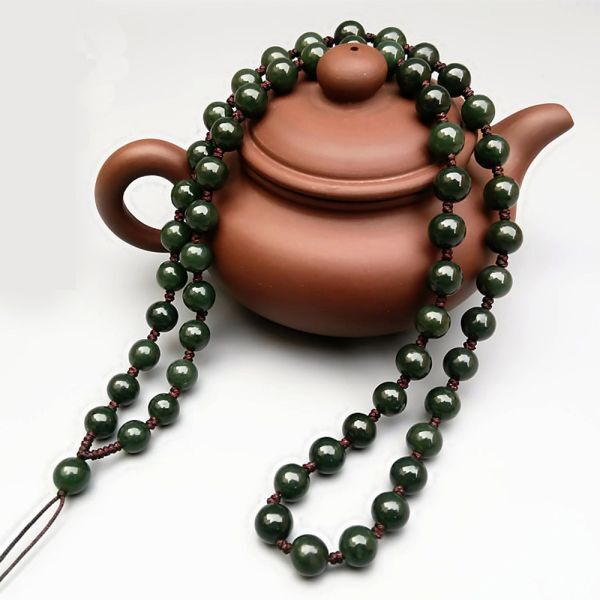 > 海外発送 天然石 ホータン玉 青玉 ジェダイト ジェード ネックレス 玉径8mm 長さ約60㎝ パワーストーン Power stone