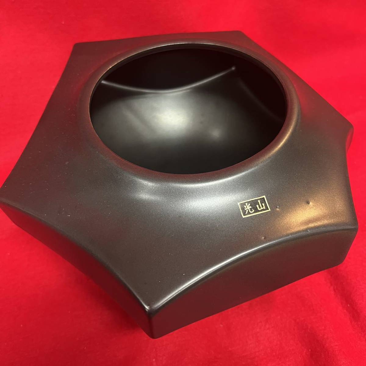 ☆未使用品☆ 光山窯 黒釉 六角 花器 華道具 花瓶 希少品 インテリア (02276E