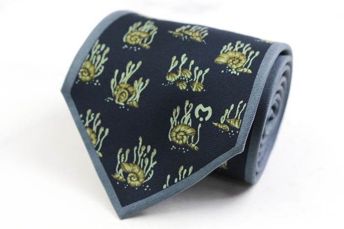 - ミラショーン シルク 総柄 ボタニカル柄 貝 イタリア製 ブランド ネクタイ メンズ ネイビー mila schon