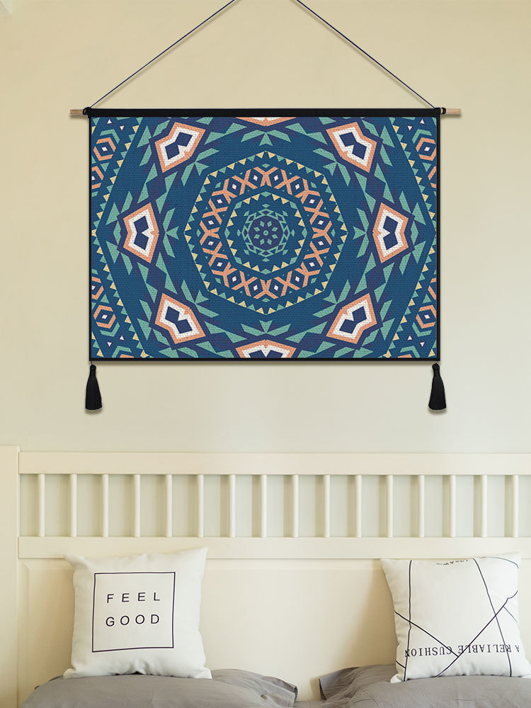 - LDL335# タペストリー 民族調の幾何学模様 アジアン タッセル付き (ブルー系)